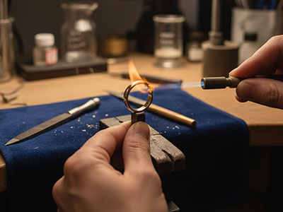 リングのサイズ直し・ロー付け等、専用工程で承ります。状態により可否が異なります。