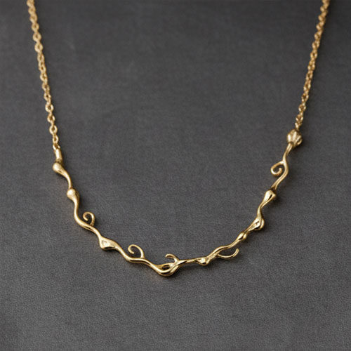 A Wind series abstracted minimal design K24 pure gold necklace. Contemporary piece that abstracts the flow of wind and the beauty of free movement. Based on abstracted minimalist philosophy, embodying contemporary aesthetics composed of only the most necessary elements. This piece eliminates all decorative elements, expressing the essential beauty of wind through the natural radiance and texture of K24 pure gold, pursuing truly pure beauty. The fusion of meticulous Japanese craftsmanship with abstracted minimal design creates high-quality jewelry that will accompany daily life for years to come.